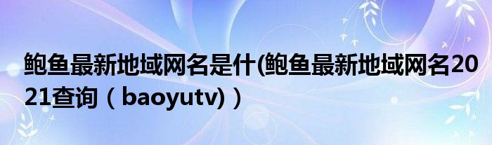 大家好,綜合小編來為大家解答以上問題。鮑魚最新地域網名是什(鮑魚最新地域網名2021查詢,baoyutv)很多人還不知道,現在讓我們一起來看看吧!