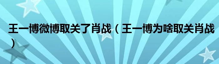 大家好,綜合小編來為大家解答以上問題。王一博微博取關了肖戰,王一博為啥取關肖戰很多人還不知道,現在讓我們一起來看看吧!