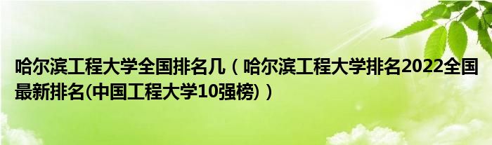 大家好,綜合小編來為大家解答以上問題。哈爾濱工程大學全國排名幾,哈爾濱工程大學排名2022全國最新排名(中國工程大學10強榜)很多人還不知道,現在讓我們一起來看看吧!