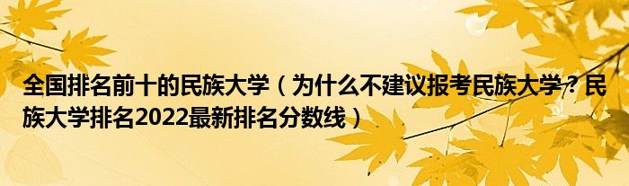 大家好,綜合小編來為大家解答以上問題。全國排名前十的民族大學,為什么不建議報考民族大學?民族大學排名2022最新排名分數線很多人還不知道,現在讓我們一起來看看吧!