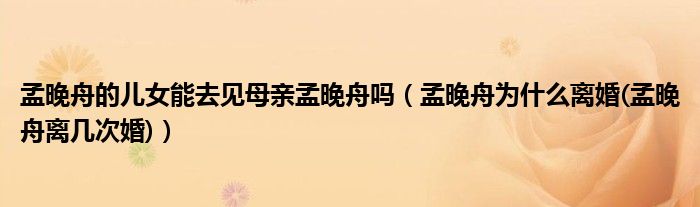 大家好,綜合小編來為大家解答以上問題。孟晚舟的兒女能去見母親孟晚舟嗎,孟晚舟為什么離婚(孟晚舟離幾次婚)很多人還不知道,現在讓我們一起來看看吧!