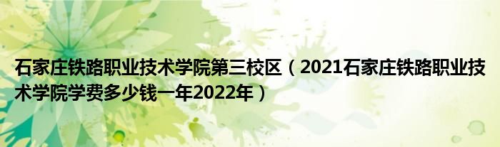 大家好,綜合小編來為大家解答以上問題。石家莊鐵路職業技術學院第三校區,2021石家莊鐵路職業技術學院學費多少錢一年2022年很多人還不知道,現在讓我們一起來看看吧!