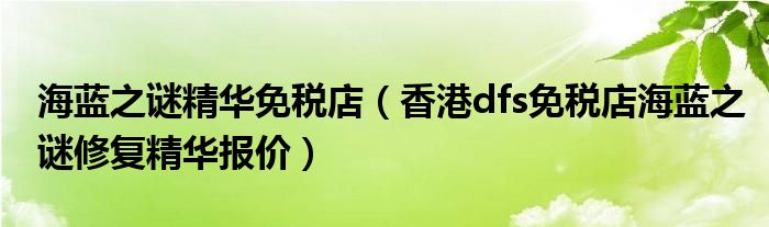 大家好,綜合小編來為大家解答以上問題。海藍(lán)之謎精華免稅店,香港dfs免稅店海藍(lán)之謎修復(fù)精華報價很多人還不知道,現(xiàn)在讓我們一起來看看吧!