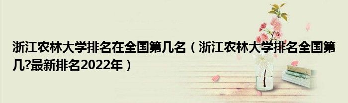 大家好,綜合小編來為大家解答以上問題。浙江農(nóng)林大學(xué)排名在全國第幾名,浙江農(nóng)林大學(xué)排名全國第幾?最新排名2022年很多人還不知道,現(xiàn)在讓我們一起來看看吧!