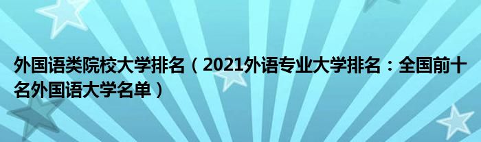 大家好,綜合小編來為大家解答以上問題。外國語類院校大學排名,2021外語專業大學排名:全國前十名外國語大學名單很多人還不知道,現在讓我們一起來看看吧!