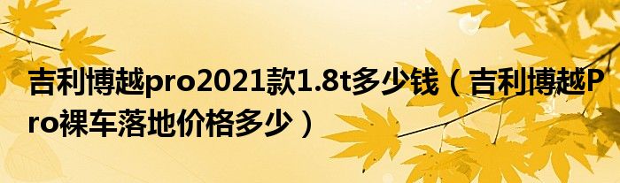 大家好,綜合小編來為大家解答以上問題。吉利博越pro2021款1.8t多少錢,吉利博越Pro裸車落地價格多少很多人還不知道,現在讓我們一起來看看吧!