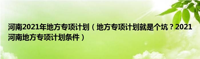 大家好,綜合小編來為大家解答以上問題。河南2021年地方專項計劃,地方專項計劃就是個坑?2021河南地方專項計劃條件很多人還不知道,現在讓我們一起來看看吧!