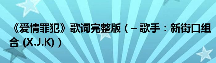 大家好,綜合小編來為大家解答以上問題。《愛情罪犯》歌詞完整版,– 歌手:新街口組合 (X.J.K)很多人還不知道,現在讓我們一起來看看吧!