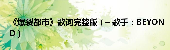 大家好,綜合小編來為大家解答以上問題?!侗讯际小犯柙~完整版,– 歌手:BEYOND很多人還不知道,現(xiàn)在讓我們一起來看看吧!
