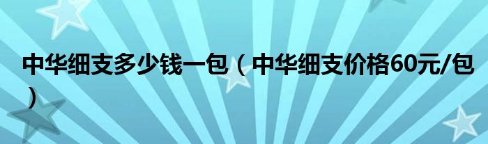 大家好,綜合小編來為大家解答以上問題。中華細支多少錢一包,中華細支價格60元/包很多人還不知道,現在讓我們一起來看看吧!