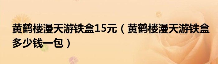 大家好,綜合小編來為大家解答以上問題。黃鶴樓漫天游鐵盒15元,黃鶴樓漫天游鐵盒多少錢一包很多人還不知道,現在讓我們一起來看看吧!