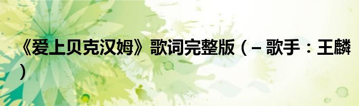 大家好,綜合小編來為大家解答以上問題。《愛上貝克漢姆》歌詞完整版,– 歌手:王麟很多人還不知道,現(xiàn)在讓我們一起來看看吧!