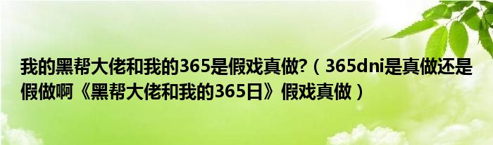 大家好,綜合小編來(lái)為大家解答以上問(wèn)題。我的黑幫大佬和我的365是假戲真做?,365dni是真做還是假做啊《黑幫大佬和我的365日》假戲真做很多人還不知道,現(xiàn)在讓我們一起來(lái)看看吧!