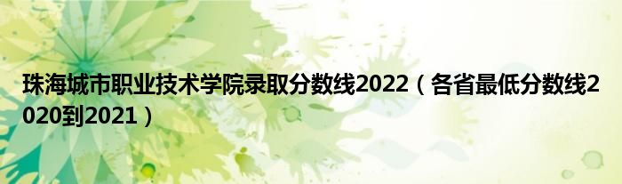 大家好,綜合小編來為大家解答以上問題。珠海城市職業技術學院錄取分數線2022,各省最低分數線2020到2021很多人還不知道,現在讓我們一起來看看吧!
