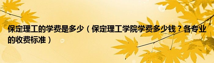 大家好,綜合小編來為大家解答以上問題。保定理工的學費是多少,保定理工學院學費多少錢?各專業(yè)的收費標準很多人還不知道,現(xiàn)在讓我們一起來看看吧!