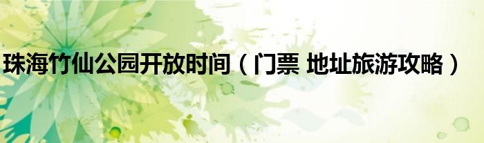 大家好,綜合小編來為大家解答以上問題。珠海竹仙公園開放時間,門票 地址旅游攻略很多人還不知道,現在讓我們一起來看看吧!