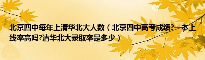 大家好,綜合小編來(lái)為大家解答以上問(wèn)題。北京四中每年上清華北大人數(shù),北京四中高考成績(jī)?一本上線率高嗎?清華北大錄取率是多少很多人還不知道,現(xiàn)在讓我們一起來(lái)看看吧!