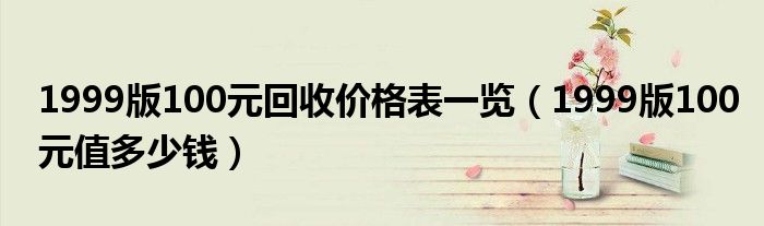 大家好,綜合小編來為大家解答以上問題。1999版100元回收價格表一覽,1999版100元值多少錢很多人還不知道,現在讓我們一起來看看吧!