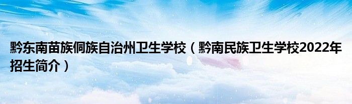 大家好,綜合小編來為大家解答以上問題。黔東南苗族侗族自治州衛(wèi)生學校,黔南民族衛(wèi)生學校2022年招生簡介很多人還不知道,現(xiàn)在讓我們一起來看看吧!
