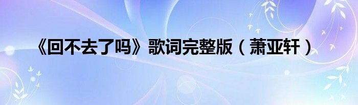 大家好,綜合小編來為大家解答以上問題。《回不去了嗎》歌詞完整版,蕭亞軒很多人還不知道,現在讓我們一起來看看吧!
