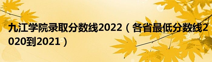 大家好,綜合小編來為大家解答以上問題。九江學院錄取分數線2022,各省最低分數線2020到2021很多人還不知道,現在讓我們一起來看看吧!