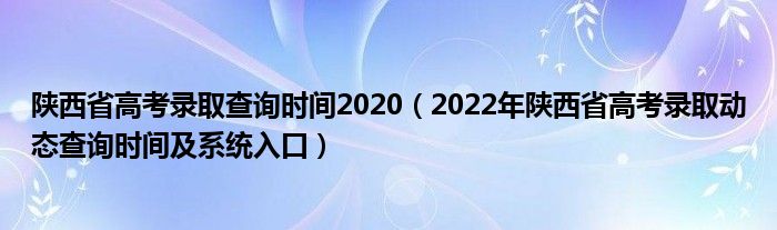 大家好,綜合小編來為大家解答以上問題。陜西省高考錄取查詢時間2020,2022年陜西省高考錄取動態查詢時間及系統入口很多人還不知道,現在讓我們一起來看看吧!