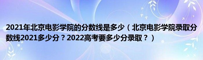大家好,綜合小編來為大家解答以上問題。2021年北京電影學(xué)院的分數(shù)線是多少,北京電影學(xué)院錄取分數(shù)線2021多少分?2022高考要多少分錄取?很多人還不知道,現(xiàn)在讓我們一起來看看吧!