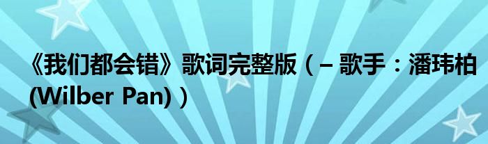 大家好,綜合小編來為大家解答以上問題。《我們都會錯》歌詞完整版,– 歌手:潘瑋柏 (Wilber Pan)很多人還不知道,現在讓我們一起來看看吧!