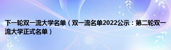 大家好,綜合小編來(lái)為大家解答以上問(wèn)題。下一輪雙一流大學(xué)名單,雙一流名單2022公示:第二輪雙一流大學(xué)正式名單很多人還不知道,現(xiàn)在讓我們一起來(lái)看看吧!