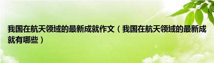 大家好,綜合小編來為大家解答以上問題。我國在航天領域的最新成就作文,我國在航天領域的最新成就有哪些很多人還不知道,現在讓我們一起來看看吧!