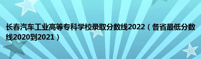 大家好,綜合小編來(lái)為大家解答以上問(wèn)題。長(zhǎng)春汽車工業(yè)高等專科學(xué)校錄取分?jǐn)?shù)線2022,各省最低分?jǐn)?shù)線2020到2021很多人還不知道,現(xiàn)在讓我們一起來(lái)看看吧!
