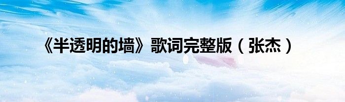 大家好,綜合小編來為大家解答以上問題。《半透明的墻》歌詞完整版,張杰很多人還不知道,現在讓我們一起來看看吧!