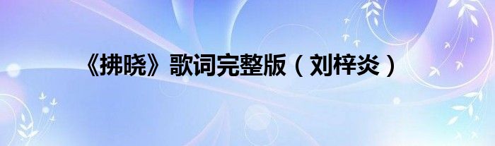 大家好,綜合小編來為大家解答以上問題。《拂曉》歌詞完整版,劉梓炎很多人還不知道,現在讓我們一起來看看吧!