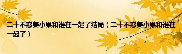 大家好,綜合小編來為大家解答以上問題。二十不惑姜小果和誰在一起了結(jié)局,二十不惑姜小果和誰在一起了很多人還不知道,現(xiàn)在讓我們一起來看看吧!