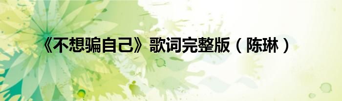 大家好,綜合小編來為大家解答以上問題。《不想騙自己》歌詞完整版,陳琳很多人還不知道,現在讓我們一起來看看吧!