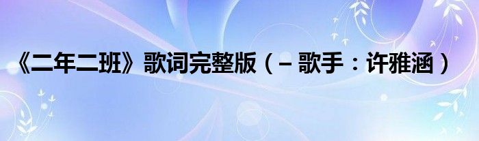 大家好,綜合小編來為大家解答以上問題。《二年二班》歌詞完整版,– 歌手:許雅涵很多人還不知道,現在讓我們一起來看看吧!