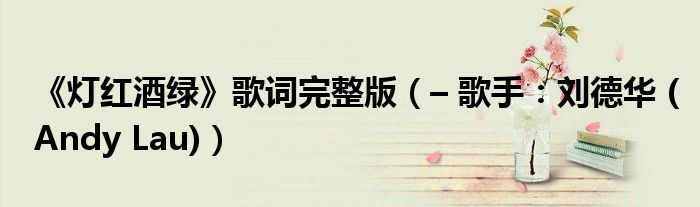 大家好,綜合小編來為大家解答以上問題。《燈紅酒綠》歌詞完整版,– 歌手:劉德華 (Andy Lau)很多人還不知道,現在讓我們一起來看看吧!