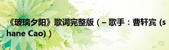 大家好,綜合小編來為大家解答以上問題。《玻璃夕陽》歌詞完整版,– 歌手:曹軒賓 (shane Cao)很多人還不知道,現(xiàn)在讓我們一起來看看吧!
