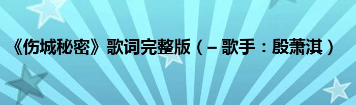 大家好,綜合小編來為大家解答以上問題?!秱敲孛堋犯柙~完整版,– 歌手:殷蕭淇很多人還不知道,現在讓我們一起來看看吧!