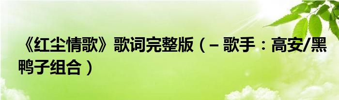 大家好,綜合小編來為大家解答以上問題。《紅塵情歌》歌詞完整版,– 歌手:高安/黑鴨子組合很多人還不知道,現(xiàn)在讓我們一起來看看吧!