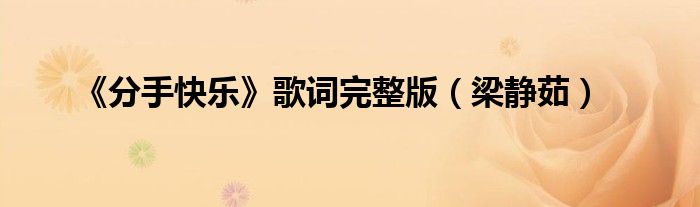 大家好,綜合小編來為大家解答以上問題。《分手快樂》歌詞完整版,梁靜茹很多人還不知道,現在讓我們一起來看看吧!
