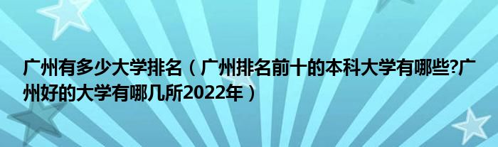 大家好,綜合小編來為大家解答以上問題。廣州有多少大學排名,廣州排名前十的本科大學有哪些?廣州好的大學有哪幾所2022年很多人還不知道,現在讓我們一起來看看吧!