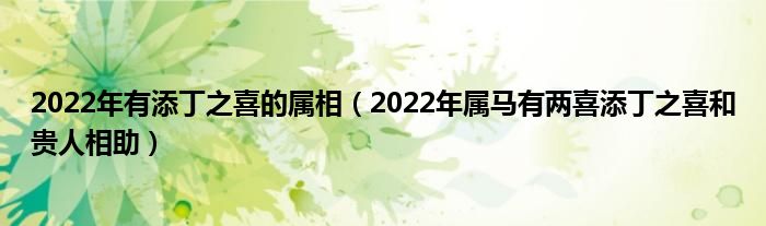 大家好,綜合小編來為大家解答以上問題。2022年有添丁之喜的屬相,2022年屬馬有兩喜添丁之喜和貴人相助很多人還不知道,現在讓我們一起來看看吧!