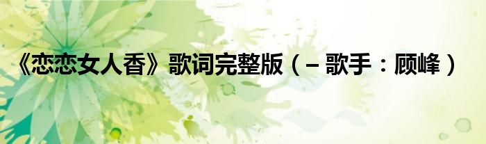 大家好,綜合小編來為大家解答以上問題。《戀戀女人香》歌詞完整版,– 歌手:顧峰很多人還不知道,現在讓我們一起來看看吧!