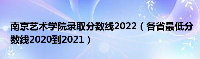 大家好,綜合小編來為大家解答以上問題。南京藝術(shù)學(xué)院錄取分?jǐn)?shù)線2022,各省最低分?jǐn)?shù)線2020到2021很多人還不知道,現(xiàn)在讓我們一起來看看吧!