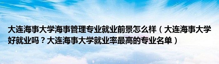 大家好,綜合小編來為大家解答以上問題。大連海事大學海事管理專業就業前景怎么樣,大連海事大學好就業嗎?大連海事大學就業率最高的專業名單很多人還不知道,現在讓我們一起來看看吧!