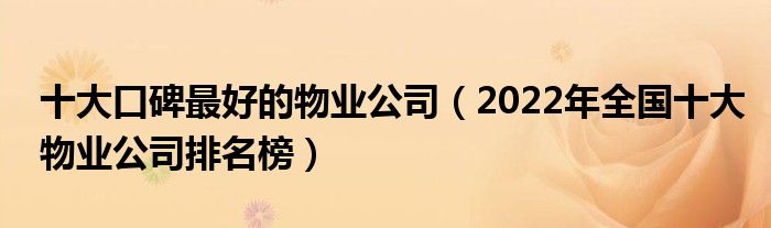 大家好,綜合小編來為大家解答以上問題。十大口碑最好的物業公司,2022年全國十大物業公司排名榜很多人還不知道,現在讓我們一起來看看吧!