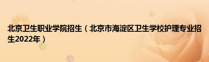大家好,綜合小編來為大家解答以上問題。北京衛生職業學院招生,北京市海淀區衛生學校護理專業招生2022年很多人還不知道,現在讓我們一起來看看吧!