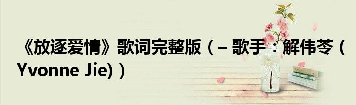 大家好,綜合小編來為大家解答以上問題。《放逐愛情》歌詞完整版,– 歌手:解偉苓 (Yvonne Jie)很多人還不知道,現在讓我們一起來看看吧!