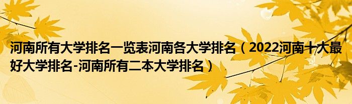 二。河南所有二本大學排名。這里是2022校友會河南省所有本科高校排名,供大家參考;其他排名可以通過夢想志愿者APP查看。